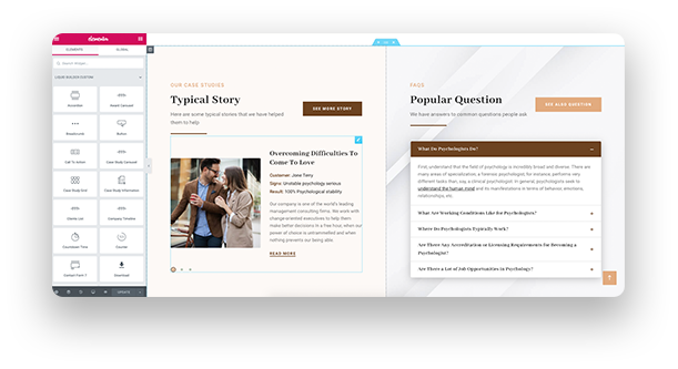 With Elementor, everything will be done visually and without code to build your site easier. Never again work on the backend and guess what the frontend will look like. You edit the page and simultaneously see exactly how it looks like.